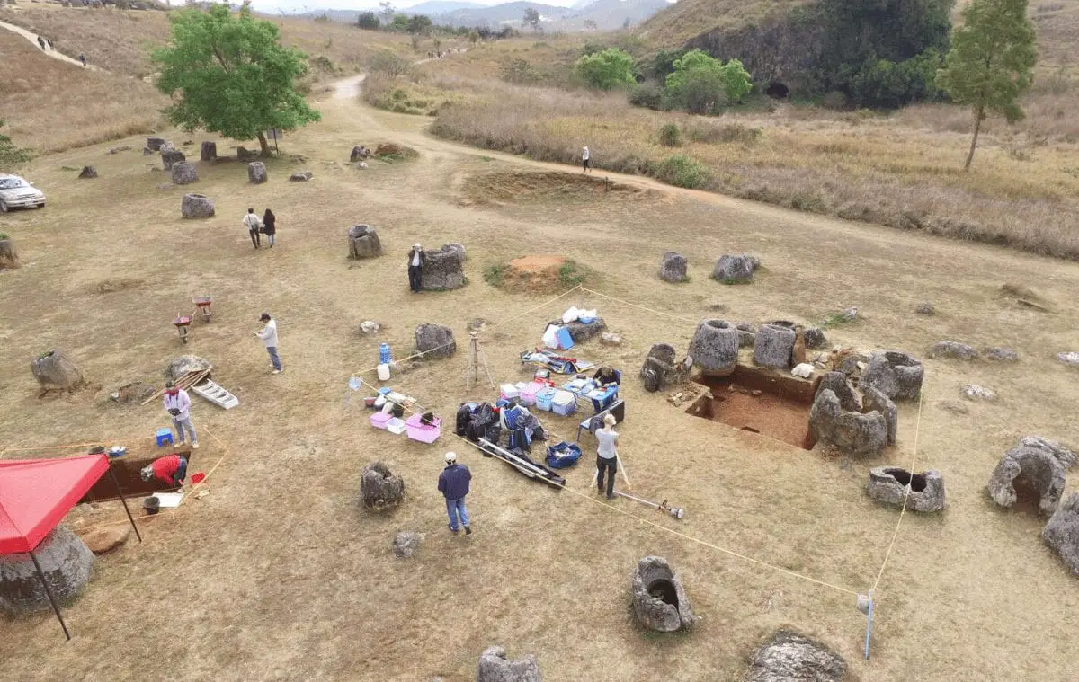 The Plain of Jars dig project in central Laos is the first major archaeological dig at the site since the 1930s. The landscape features ancient carved stone jars up to three metres tall, their purpose remains a mystery.
