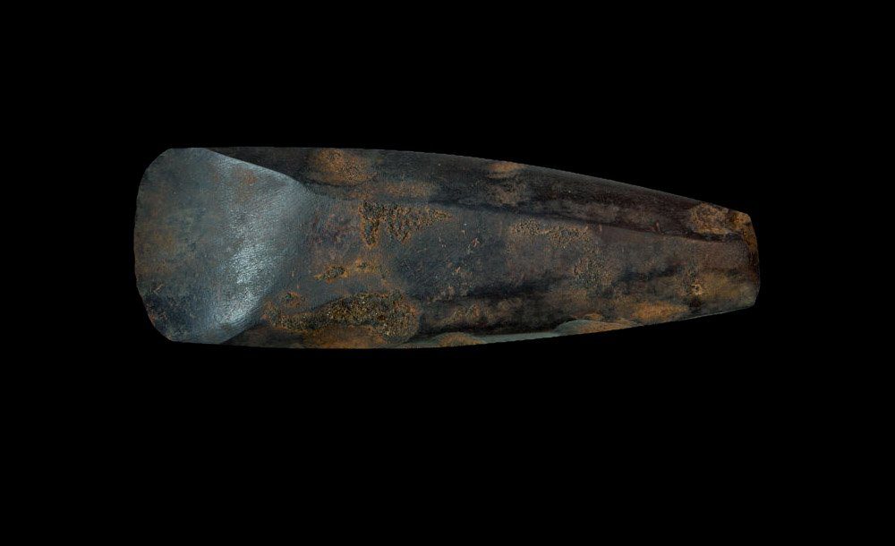 A highly polished stone adze interred with the remains, thought to represent the earliest known completely polished adze or axe in Europe, was revealed to have been commissioned for burial at the site.
