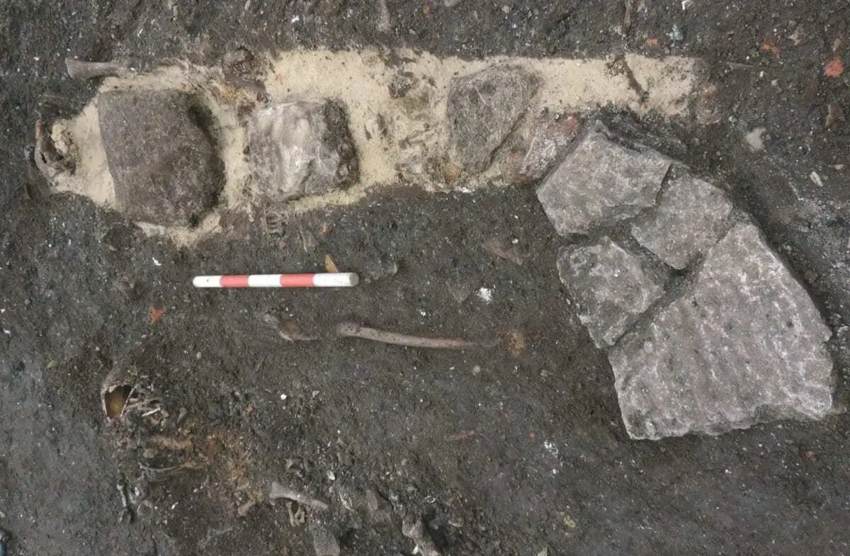 While excavating the burial ground, archaeologists uncovered a sand-filled coffin topped with heavy stones. This discovery is rare archaeological evidence of the preventative measures taken to thwart bodysnatchers.