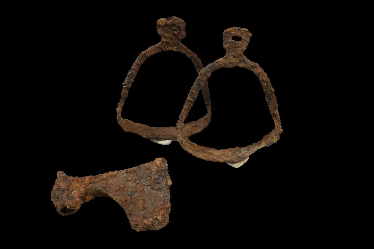 In another burial, designated No 49, the researchers excavated another wooden burial structure and pieces of horseman’s equipment, such as stirrups and a girth buckle (used to fasten the saddle). A battle axe was also found accompanying the deceased, which has a semicircular notch at the base and a carved butt, similar to axe types most common in Rus’ in the 11th to early 12th century.