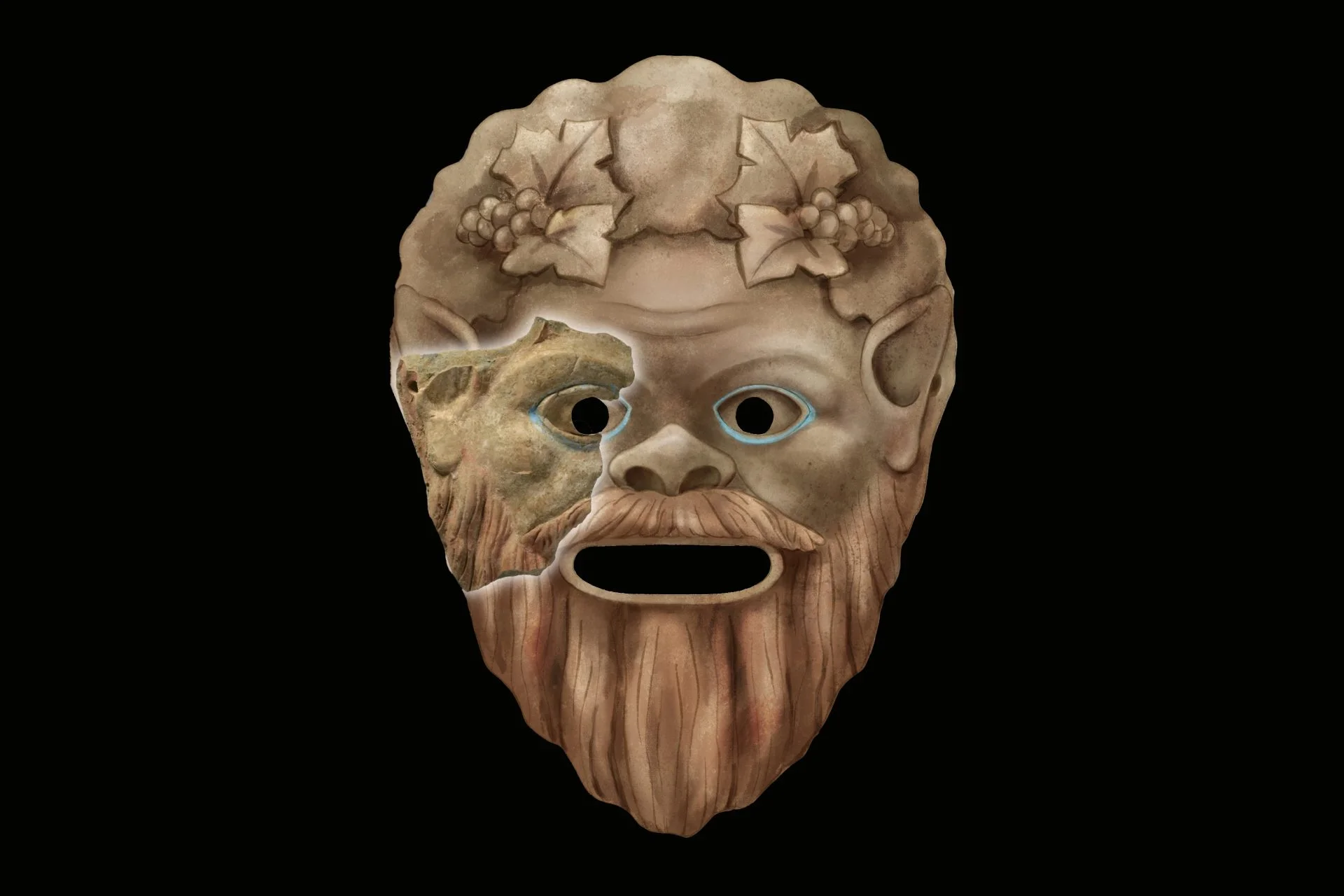“In ancient Greece, actors wore masks to switch roles and convey emotions. Facial features and colours allowed audiences to recognise a character’s personality at a glance.”