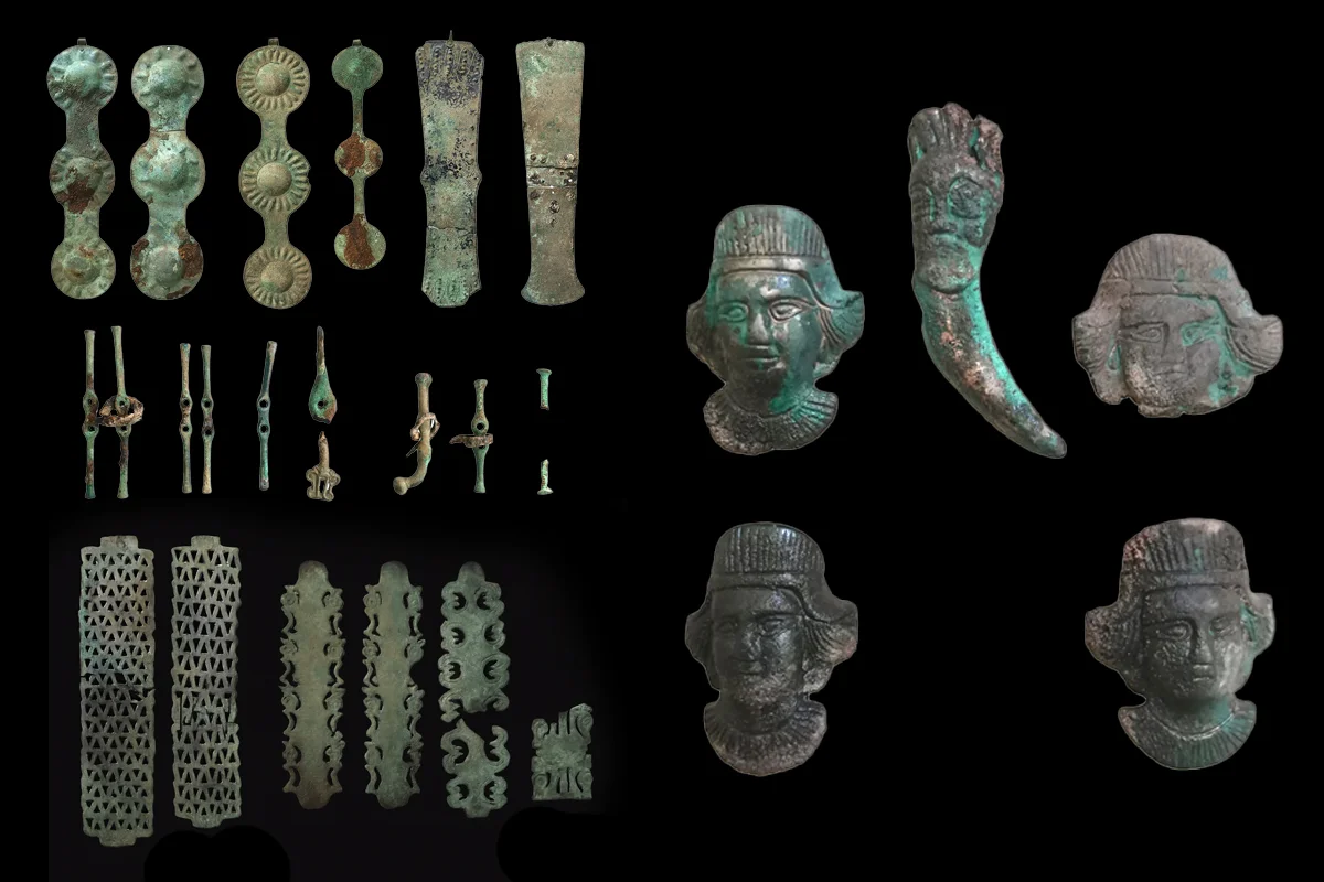 The assemblage includes iron bits, horn and metal cheekpieces, girth buckles, bronze and bone ornaments, and numerous browbands. Among the standout pieces are up to 17 bronze plate forehead protectors, 30 openwork plaques and a series of round decorative plaques depicting swastikas, birds and mythical creatures.