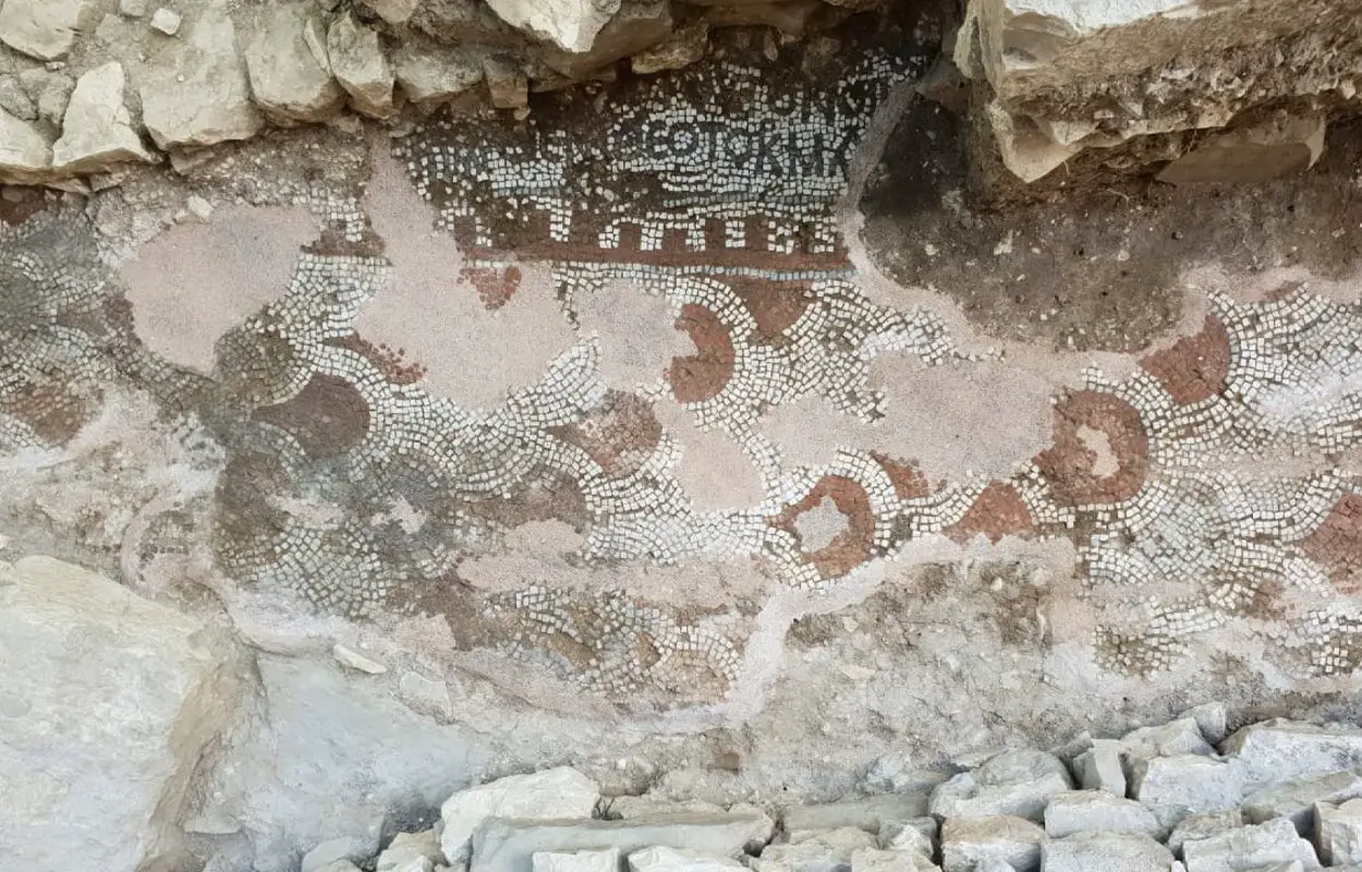 A second mosaic fragment was discovered in 2018 during drainage works beneath the foundations of the King’s Mosque in the lower city. This smaller section, measuring roughly 2.3 by 0.8 metres, was created using the opus tessellatum technique and also bears traces of burning. A fragmentary Greek inscription includes the word Theotokos (“Mother of God”), a title that gained doctrinal prominence following the Council of Ephesus in AD 431.